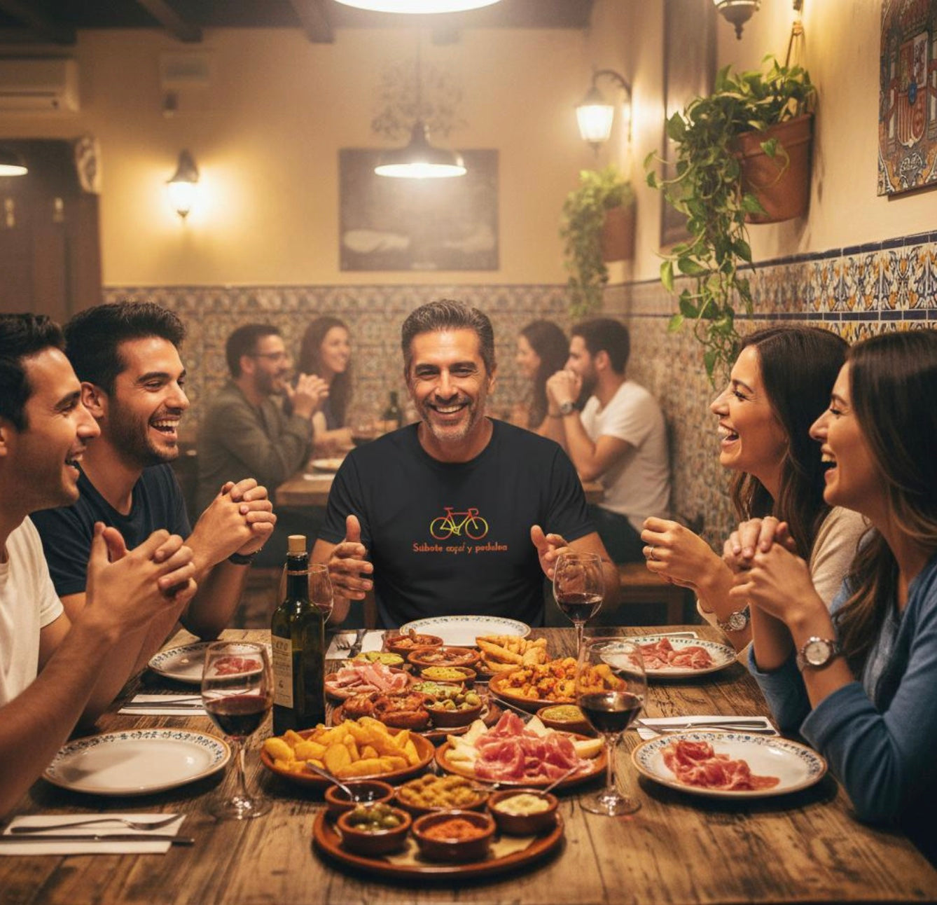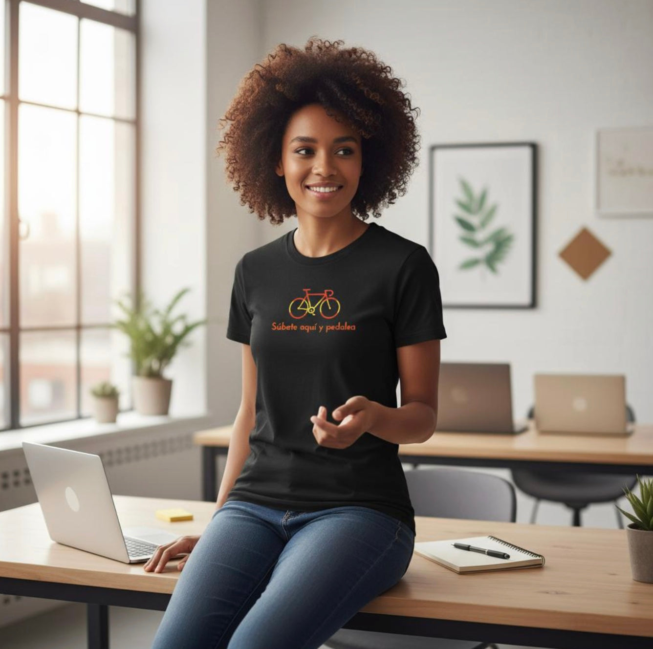 Celebrate your passion for cycling and Spain with our exclusive "Súbete" Spanish Cycling T-Shirt that showcases a stunning front design of a road bicycle in the official colors and style of the Spanish flag. This tee includes a clever word play on a beloved Spanish expression "Súbete aquí y pedalea" - minus (cough, cough) a certain hand gesture that usually goes along with it (wink, wink), now re-adapted to encourage cyclists around the globe to just get on their bikes and ride.